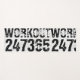 Worn out and scratched text Workout 247365 rustic in black colour with white background. Perfect for anyone who is lifting, fitness, training, bodybuilding and going to the gym.