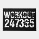 Worn out and scratched text Workout 247365 in white colour with black background. Perfect for anyone who is lifting, fitness, training, bodybuilding and going to the gym.