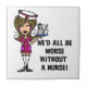 A cute nurse design featuring a brown haired nurse with a tray with water and a pitcher and text that reads We'd All Be Worse Without a Nurse on nurse T-shirts, bags, mugs, stickers, cards, magnets, and other nurse apparel and gifts.