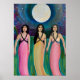 Moon artwork. Three angelic celestial women colourful abstract AI artwork. generativecontent