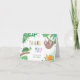 Cute "thank you card" with slow animals and tropical leaves and flowers! Features adorable, hand-painted sloth, turtle and snail hanging out in the jungle among colourful tropical flowers.