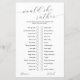 Add a touch of elegance and fun to your bridal shower with our sophisticated "Would She Rather" game. This minimalist design features a clean black and white aesthetic with romantic script lettering, perfect for a modern and chic celebration. With its playful questions and simple format, this game is sure to spark laughter and conversation among your guests as they try to guess the bride's preferences. Create unforgettable memories with this stylish and engaging bridal shower activity.