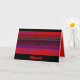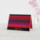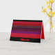 This lively friendship card says "Hello"! It features an abstract pattern of woven horizontal bands. The brilliant shades of red, purple, blue and black seem to glow. Inside are more wild colours and the message "just thinking of you". You can customise all the text to suit your needs.