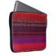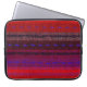 This laptop sleeve features an image of a colourful abstract pattern of woven horizontal bands. The brilliant colours of red, purple, blue and black seem to glow. You can add text if you wish.