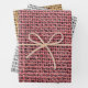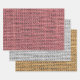A rustic burlap pattern wrapping paper in burgundy, gold and grey.