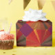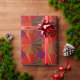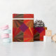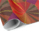 This striking wrapping paper features a repeating pattern of a decorative geometric abstract design. Brilliant colours of red, orange, gold, brown, yellow , maroon and green all converge at the centre in a vortex pattern. The central circle has repeating triangles resembling various woven textures.