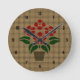 Woven Red Poinsetta Round Clock