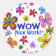 A pretty colourful original artwork design that reads, "Wow, nice work!"  Drawing of retro flowers surrounds the text.