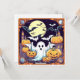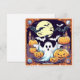 Fantastic spooky Halloween. A big Moon with friends ghosts, pumpkins and bats.