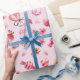Whimsy 29" x 6ft wrapping paper roll featuring pink and red candy hearts, lollipops, hydrangeas flowers with modern script name. Easily change the name to make it yours using the Template provided. Printed on heavyweight 60 lb. uncoated matte paper. The rolls are packaged nicely for shipping and crease-free. See "About This Product" at side for more information and length package guide. HIGH reviews.