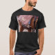 I give wanted to give this a 4 instead of a 5 because these Basic DARK T0shirts run unexpectedly SLIM or Narrow. Which is great if you do not have a potbelly, but I have a paunch. It isn't the shirt's fault that I've got a beer belly. The design and shirt itself is a quality cotton shirt. The color is more of a deep purple, but still a very pretty color. The Basic DARK T-shirts run a bit SLIMMER than the Basic Ts. The neck is a fraction narrower (or seems to be narrower) also. I'm a paunchy middle-aged woman and my neck is 12 inches (31cm) thick and the neckline fell about the same as in the photo of the man, and I had the desire to tug it a bit. So if you're a thick necked man or like loose shirts, be aware these are slimmer shirts. Once I get rid of my lockdown paunch it'll look great. The shirt washed well in cold water with no apparent bleeding. We don't have a dryer, so it hung dry. Did not shrink. Love the colors and the design. The design looks smaller on my shirt than it does on the model on-line. But still, it looks good on the shirt. The printing looks as it does on the model, just the size seems fractionally smaller. Washed garment in cold water, hung dry and design appeared unaffected.