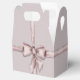 An adorable baby pink background with a watercolour dusty pink bow wrapped right around this favor box.