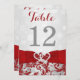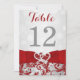 Set the tone for your Christmas or winter wedding with this inexpensive, yet luxuriously elegant red and silver grey floral FAUX glitter damask pattern wedding table number card that has a background of assorted white snowflakes on it and a PRINTED red ribbon and bow with a pair of diamond jewels and FAUX red glitter joined hearts on it. It is suitable for a winter wonderland theme wedding or for a Christmas or New Year's Eve wedding or party with a red and silver colour scheme. ***PLEASE NOTE there are no raised elements on this invitation. Everything is printed flat. ***PLEASE NOTE that if you change the fonts or size of the fonts, it may alter how your invitation prints. It will print the way you see it on your monitor, so if you have alignment issues, or sizing problems, please contact me for help BEFORE you order. I will not see your invitation once you order it, and Zazzle will NOT edit anything (typos, alignment, etc.). If you require assistance or would like any other matching items, or a different colour combination, please email your request to niteowlstudio@gmail.com.