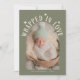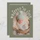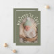 Elegant and modern Christmas theme birth announcement card featuring a text that says "wrapped in love" with stars. This is a birth announcement card for the holiday seasons! Add your photos, birth stats, and a message! The background is sage green.
