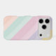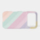 With pastel orange, green, pink, purple, yellow, and small hints of texture, this phone case displays a diagonal, unicorn, double striped pattern. Each color has a dark and light shade. It is ideal for use as a fashion accessory, birthday gift, or simply to fulfill the desire of a cute phone case.