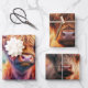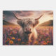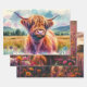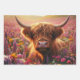 Celebrate the wild and whimsical with RHDesigns by 2ChattyChicks. This 29x19 rolled wrapping paper features three artistic Highland cow prints, each set in a vibrant field of florals with expressive faces and scenic backdrops.