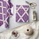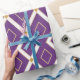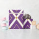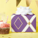This beautiful gift wrap displays a dynamic diamond shape pattern in purple gold and white. The amnesty purple is vibrant and contrasts perfectly with the golds, and whites.