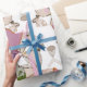wrapping paper, pink mushroom fairies design, gift wrap, plum, pink
