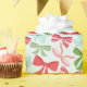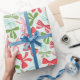 Trendy Christmas bow wrapping paper in colours of green, red, blue, and pink.