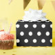 Gift wrapping paper shown in a cute black and white polka dots print, shown in glossy.
