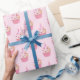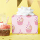 This gift wrapping paper is shown in a light pink colour paper with a cute Birthday pink cupcake print design.