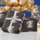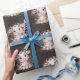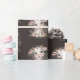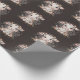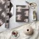 A charming ukiyo-e illustration of a gentle, adorable cow on a dark background. The cow has large, expressive eyes, a sweet smile, and small, floppy ears. The cow is sitting on a patch of grass and is surrounded by floral patterns. Perfect gift paper for those who love cows.