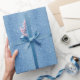 This giftwrap wrapping paper is shown in faux blue glitter print.