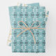 Festive Royal Botanical Robin's Egg Blue Wrapping Paper Sheets features a Forever Endeavor original print. It displays one sheet with the original pattern, a unique floral motif, another sheet with a Christmas ornament surrounded by north stars, and a third sheet displaying Christmas trees with gold lines and north stars. Bundle these wrapping paper sheets with matching items from this collection, like stickers and tissue paper.
