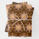 Three sheets of wrapping paper with brown and orange medallions. Each sheet is a different variation. All occasions . The medallions are based on actual tiles From Oregon tile maker Fay Jones Day