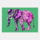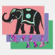 Set of three sheets of Elephant design wrapping paper in bright colours.