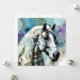 A majestic horse is depicted using a watercolor style, with splashes of blues, purples, and browns adding depth and dimension. The soft blending of colours creates a dreamlike effect, highlighting the horse's graceful features. This digital watercolour painting is of an Appaloosa stallion, an American breed best known for its colourful spotted coat.