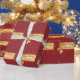 A rich, reddish, burgundy provides a beautiful backdrop to faux metallic gold stars, bow and "label" area. Inside the golden frame, your colour-matched, Christmas or holiday salutations. This gorgeous, design is tiled and repeated across the length of this fabulous holiday wrapping paper.