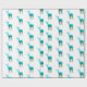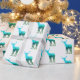 This gift wrapping paper is shown in white with a heard of blue to green elk/deer with their antlers. repetitive print.