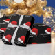 A red Santa hat and white text on black background wishes your gift recipient a Merry Christmas with their name on it.