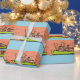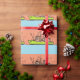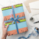 Nautical theme gift wrapping paper with small motor boats decorating the gift wrapping paper.