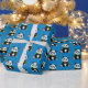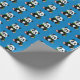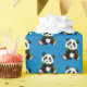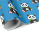 Gift wrapping paper shown in a blue background colour with a cute panda bear print.