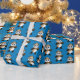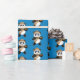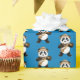 Gift wrapping paper shown in a blue background colour with a cute panda bear print.