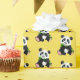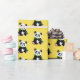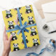 Gift wrapping paper shown in a yellow background colour with a cute panda bear print.