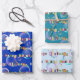 wrapping paper set of 3, blue and teal colour tone
