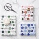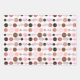 wrapping paper in repeating abstract pattern, ovals and circles, handwritten text, ornaments, pale colour tones