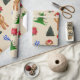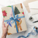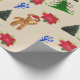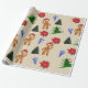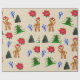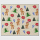 Winter holidays wrapping paper with ginger bread cookie, flowers, pine trees.Custom background color.