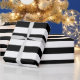 This is an elegant wrapping paper that could be used for any occasion. It features a black and white stripes.