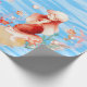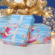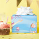 Happy Birthday wrapping paper with a pink tail and one red tail mermaids