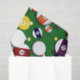 In the 19th century a poolroom was a horse race betting parlor. Pool tables were installed so the bettors could pass time between horse races. Billards, or pool, is the descendant of a game similar to croquet that was played in 15th-century Europe. Though we don't know for sure, it is strongly suspected that billiards came to America with Dutch and English settlers. By the 1700's, skilled cabinet makers were crafting beautiful tables, though the equipment was, otherwise, quite primitive. Fifteen-ball pool came on the scene in the late 1800's and grew in popularity through the 1940's. Billiards was revived in 1961 with the release of the movie THE HUSTLER. It enjoyed another surge in the mid 1980's with the release of the movie sequel, COLOR OF MONEY. Since that time, there has been an evolution of the environs in which we find pool tables -- they're in restaurants and night clubs and sports bars, allowing pool to find a modern audience and new generations of enthusiasts. This marvelous design is layers of billiard balls in varying sizes for greater depth. They are scattered all over a "green felt" backdrop. This fabulous tissue paper is an excellent choice for your favorite "pool shark" and is especially dramatic when paired with the matching gift bag offered in this collection.