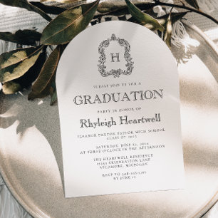 Classic Black Monogram Crest Arch Graduation Party Invitation
