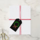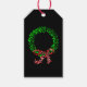 A wreath made of colourful dots on a gift tag. The black background makes the wreath stand out more.