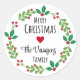 Wreath Merry Christmas Stickers Last Name Round