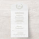 Elegant foil all in one wedding invitation featuring a clean and timeless design with your monogram inside of a wreath crest.  The attached RSVP card has meal choices for your guests.