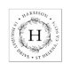 Add an elegant touch to all your correspondence with our chic monogram return address stamp, featuring your single initial family monogram in classic lettering, framed by a botanical wreath with your last name and return address curved around the outside.