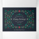 This design features a festive wreath made of holly, berries, and various winter foliage. The bold greenery and red accents pop against a dark background, surrounding a heartfelt message of holiday cheer and wishes for a wonderful New Year.